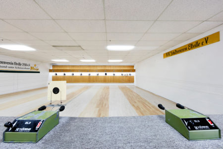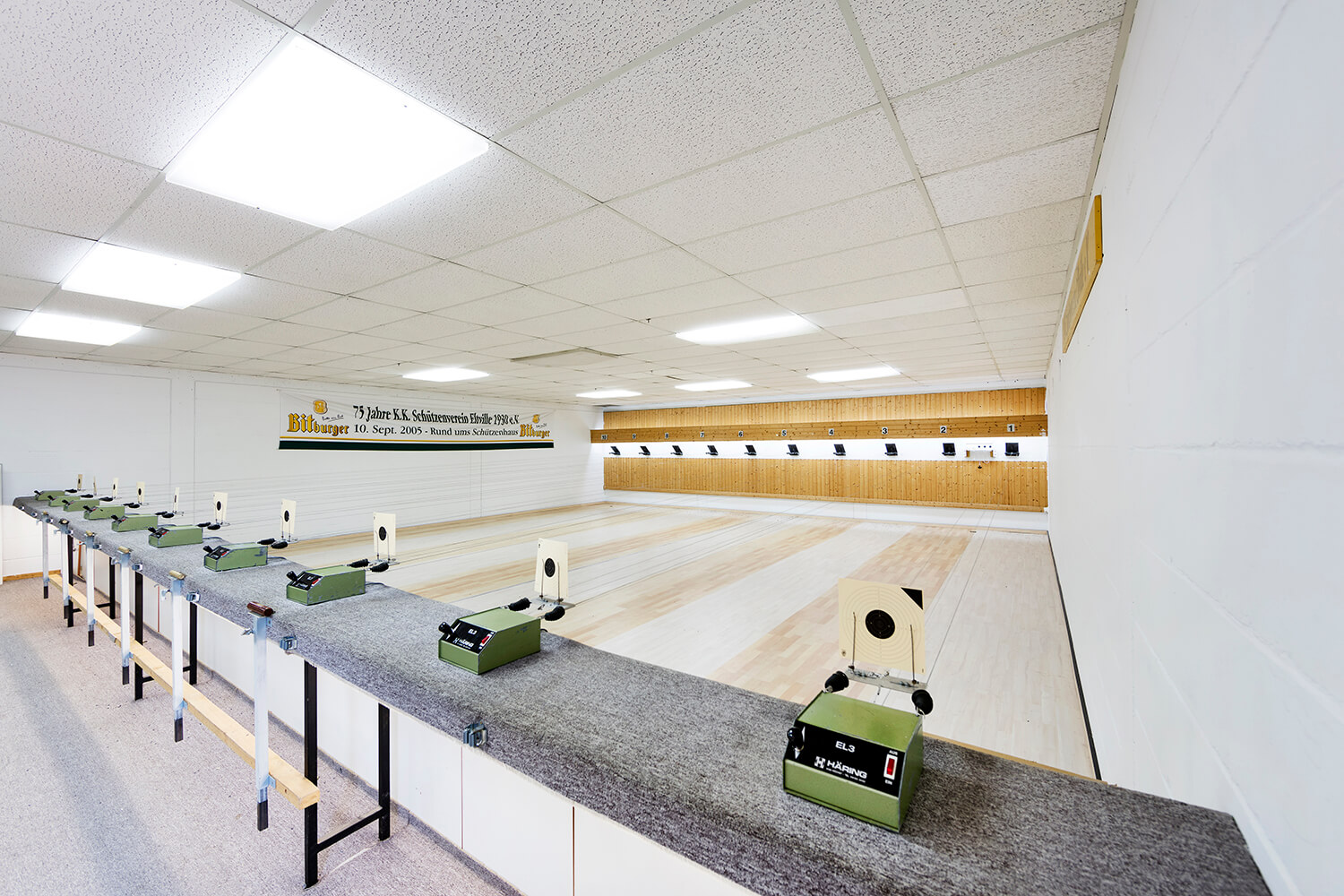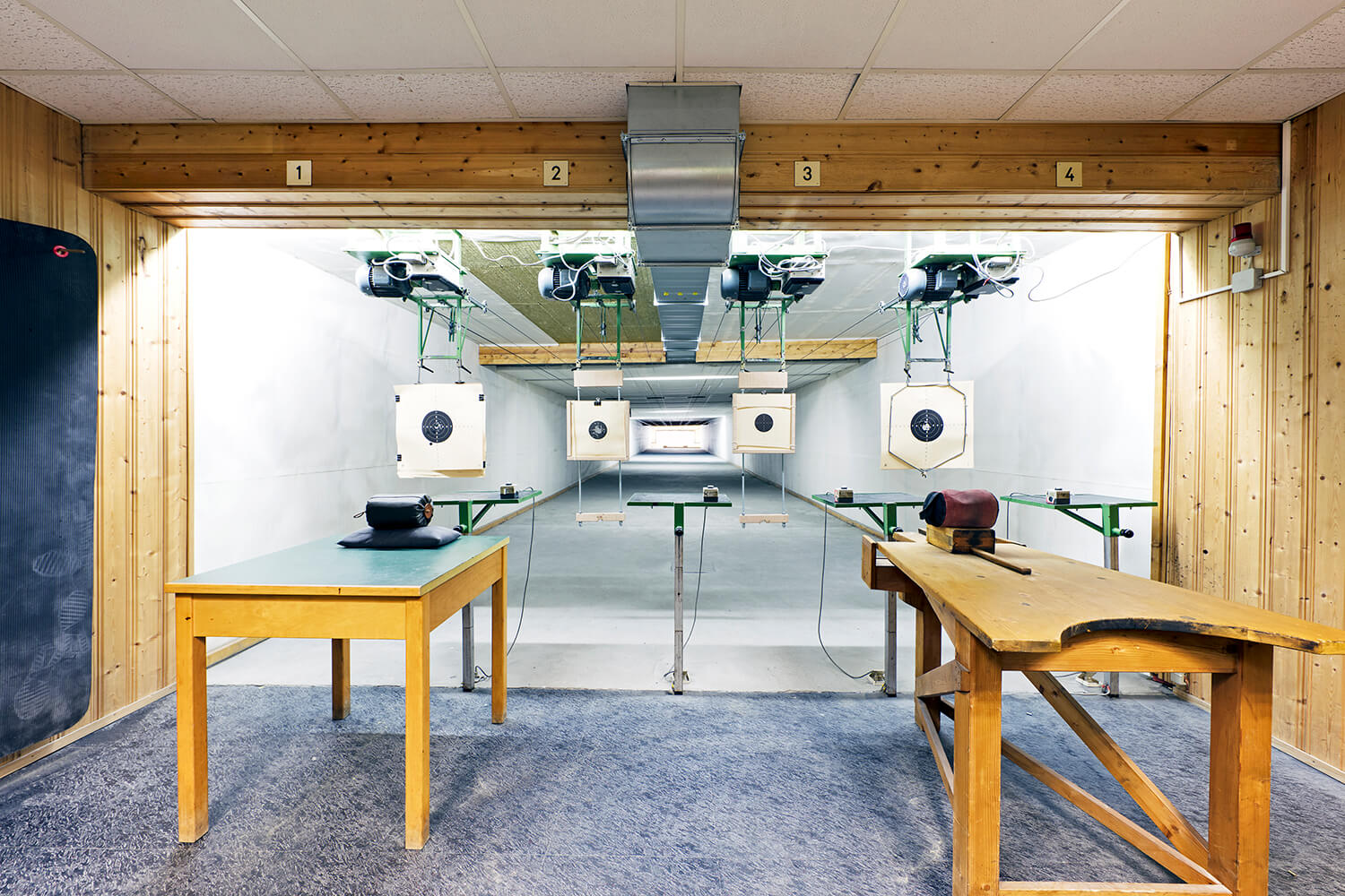 5 x 25 Meter Stände mit Drehscheibenanlagen für Sportpistolen aller Kaliber und Revolver stehen euch zur Verfügung.